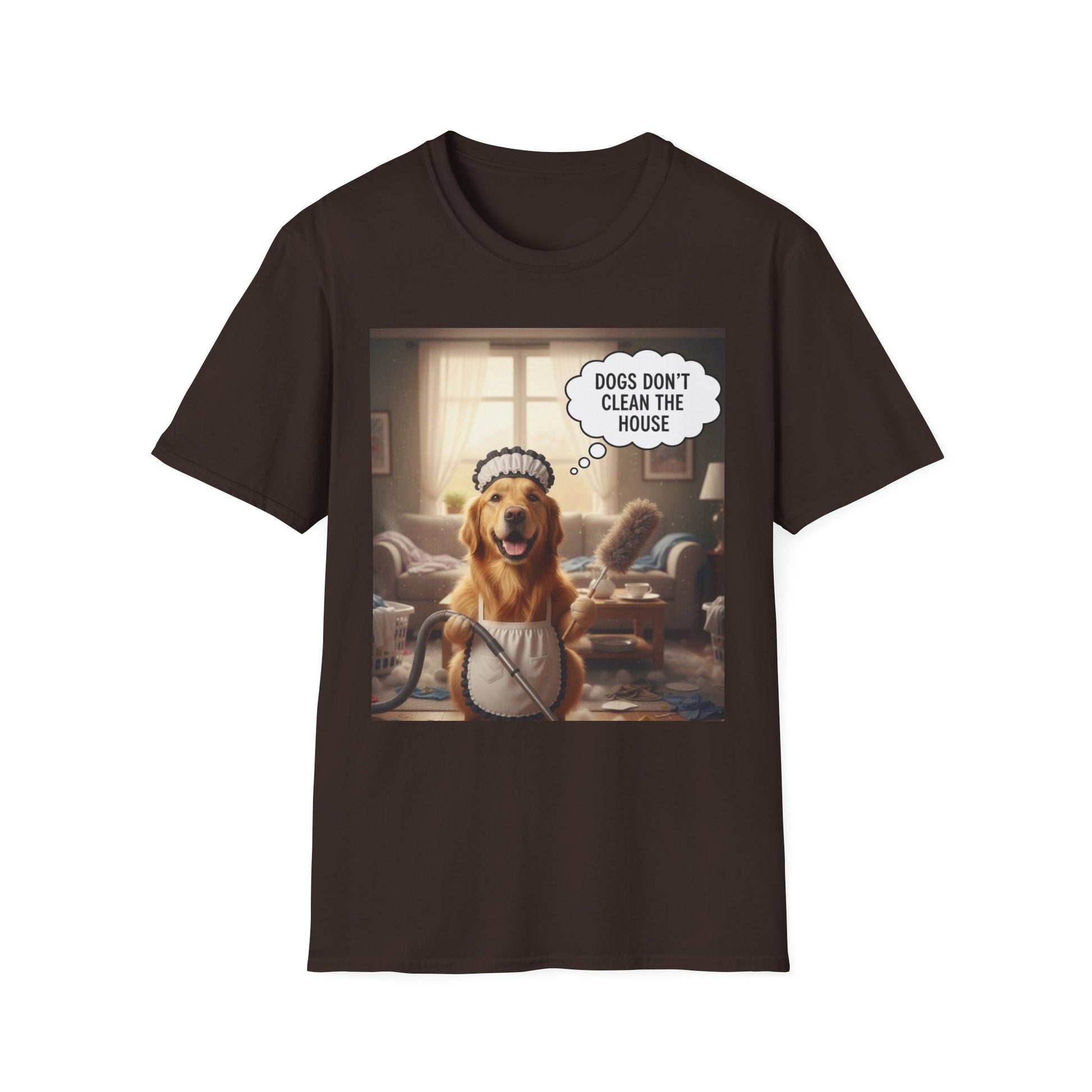 A unisex softstyle T-shirt featuring the fun and quirky 'Dogs Don’t Clean' design. Perfect for dog lovers and those who appreciate a touch of humor in their wardrobe. This shirt can be worn casually or dressed up for any occasion, making it a versatile addition to your closet. Ideal for casual days out or even as a conversation starter at social events. Great for gifting during birthdays, holidays, or just to bring a smile to someone's face.