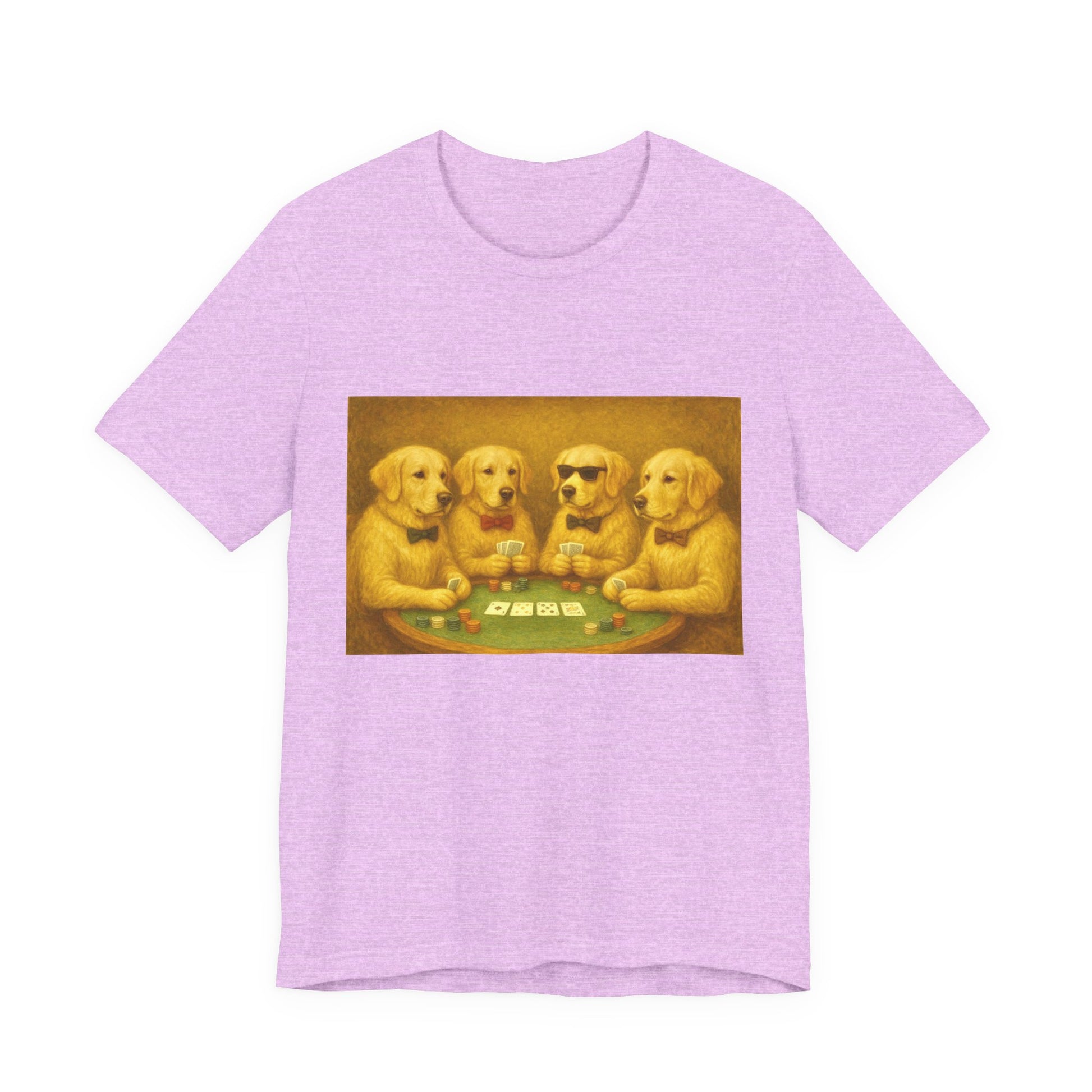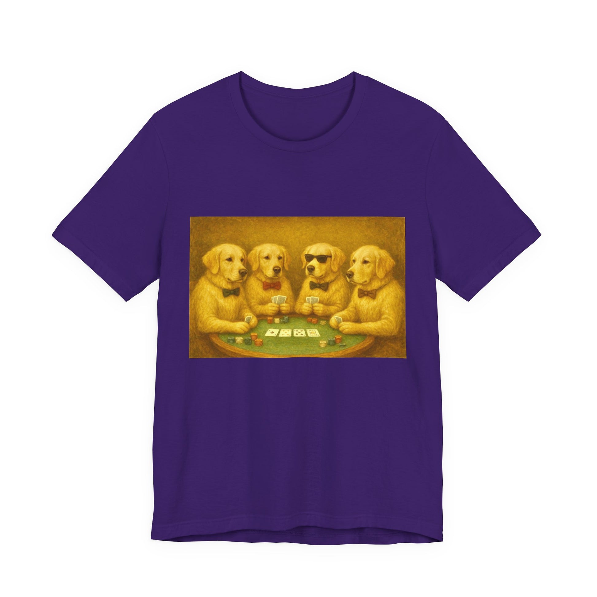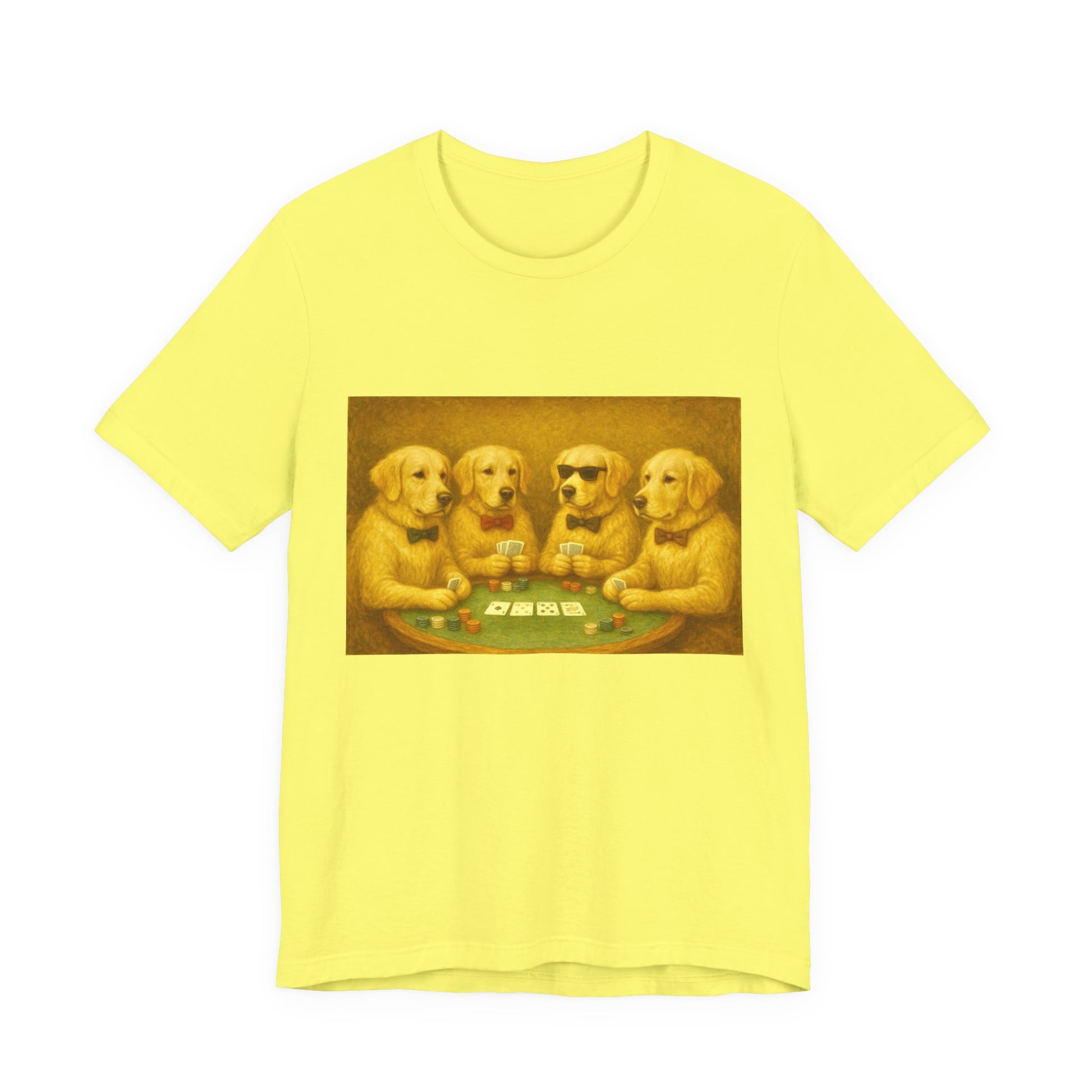 This Golden Retrievers Playing Poker Cotton Tee exudes a fun and playful vibe, perfect for dog lovers and fans of poker. It's a great addition to casual outfits and can be worn during game nights or laid-back gatherings with friends and family. Ideal for dog-themed parties, poker nights, or as a gift for dog owners.