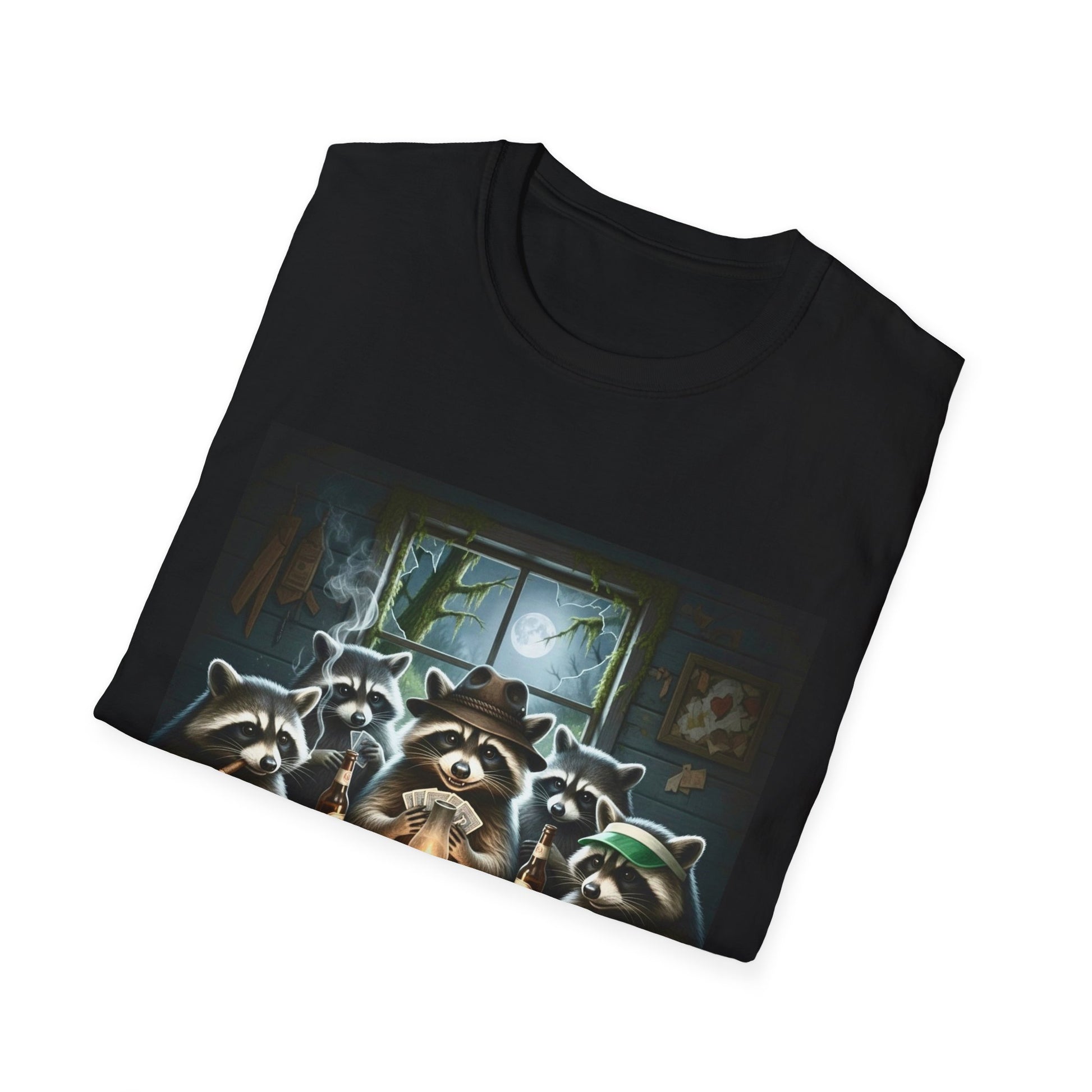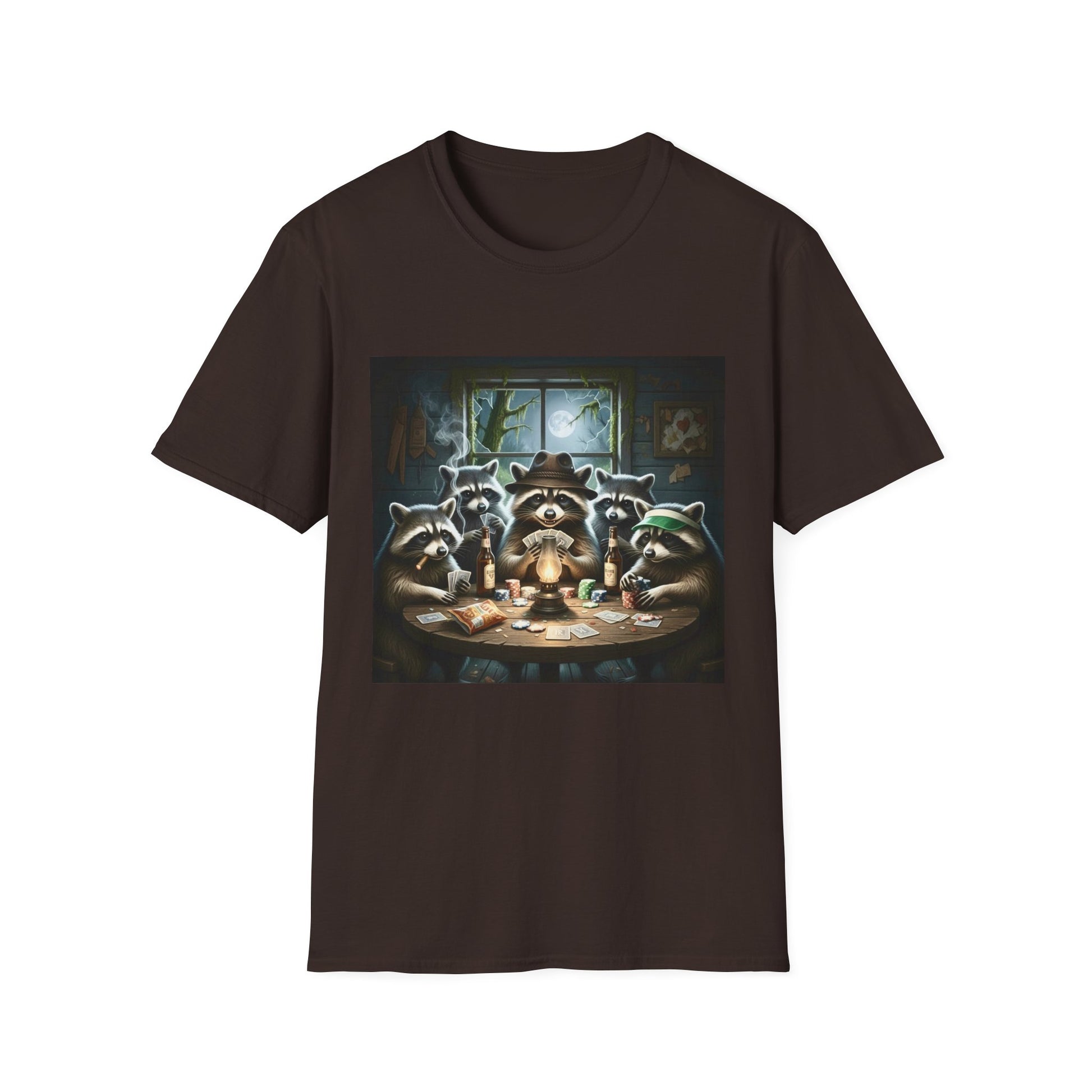 A quirky and playful T-Shirt featuring raccoons playing poker. This T-Shirt exudes a fun and light-hearted vibe, perfect for casual wear or as a conversation starter. Ideal for adults who enjoy unique and humorous designs. Perfect for gifting on birthdays, holidays, or special occasions.