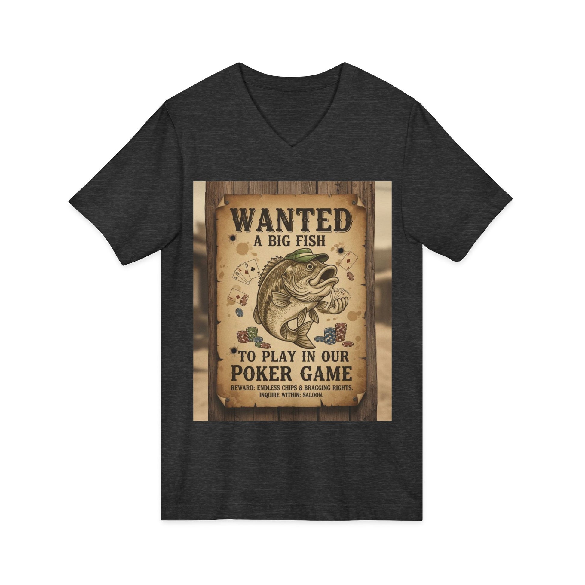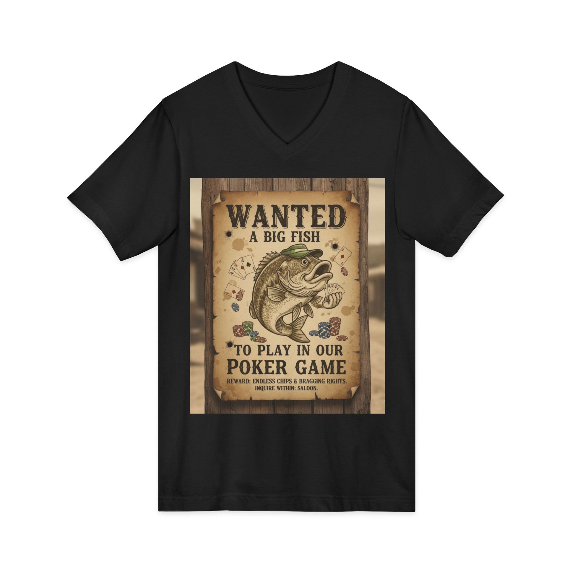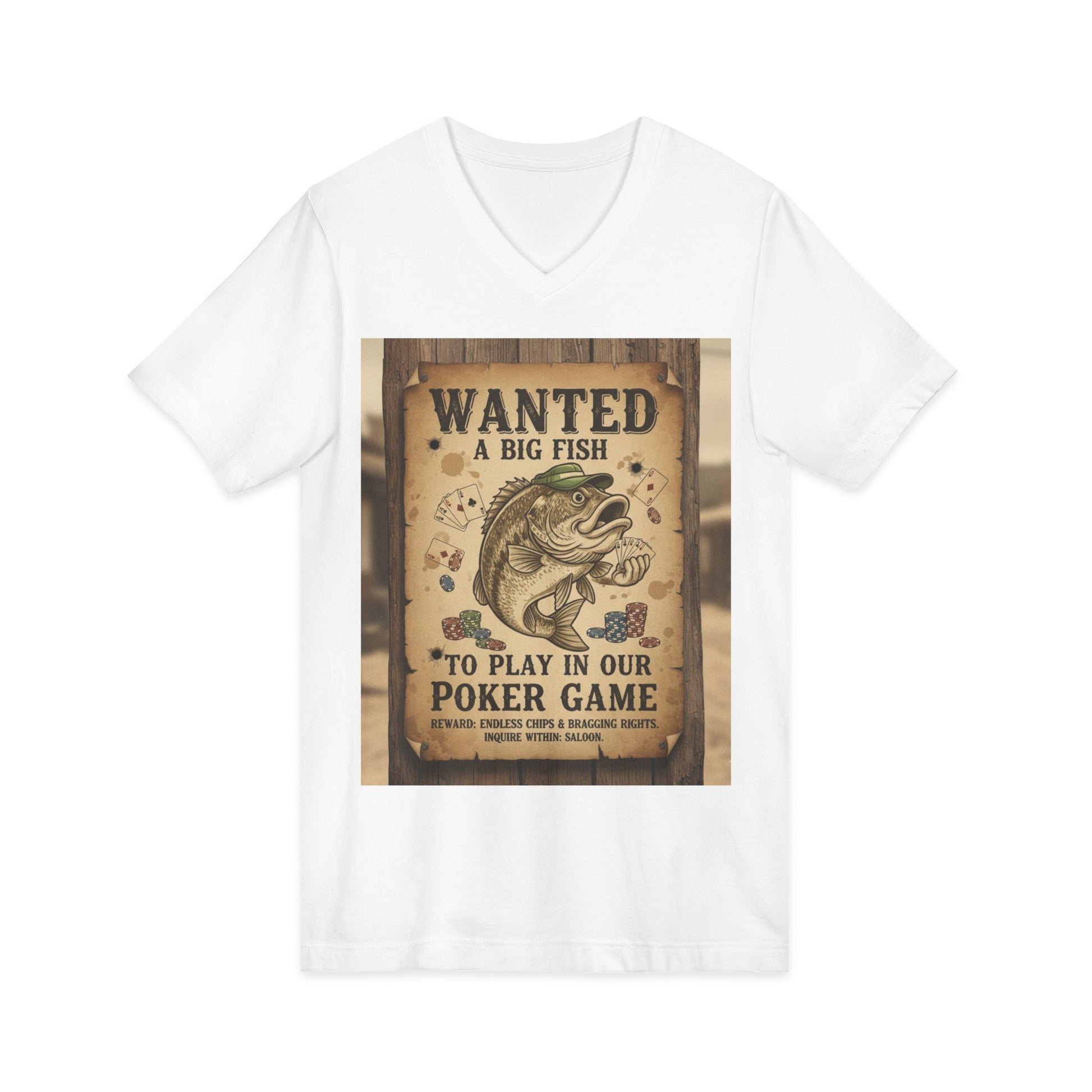 Wanted Poker Fish V-Neck Tee