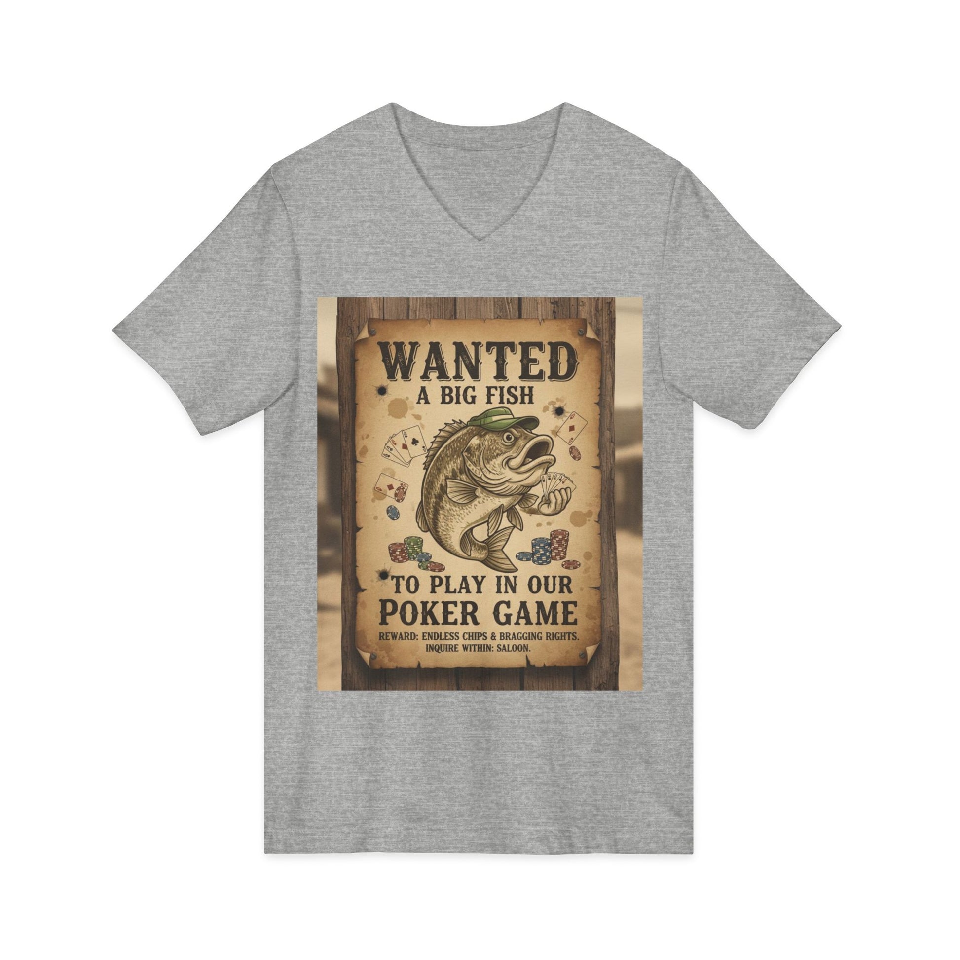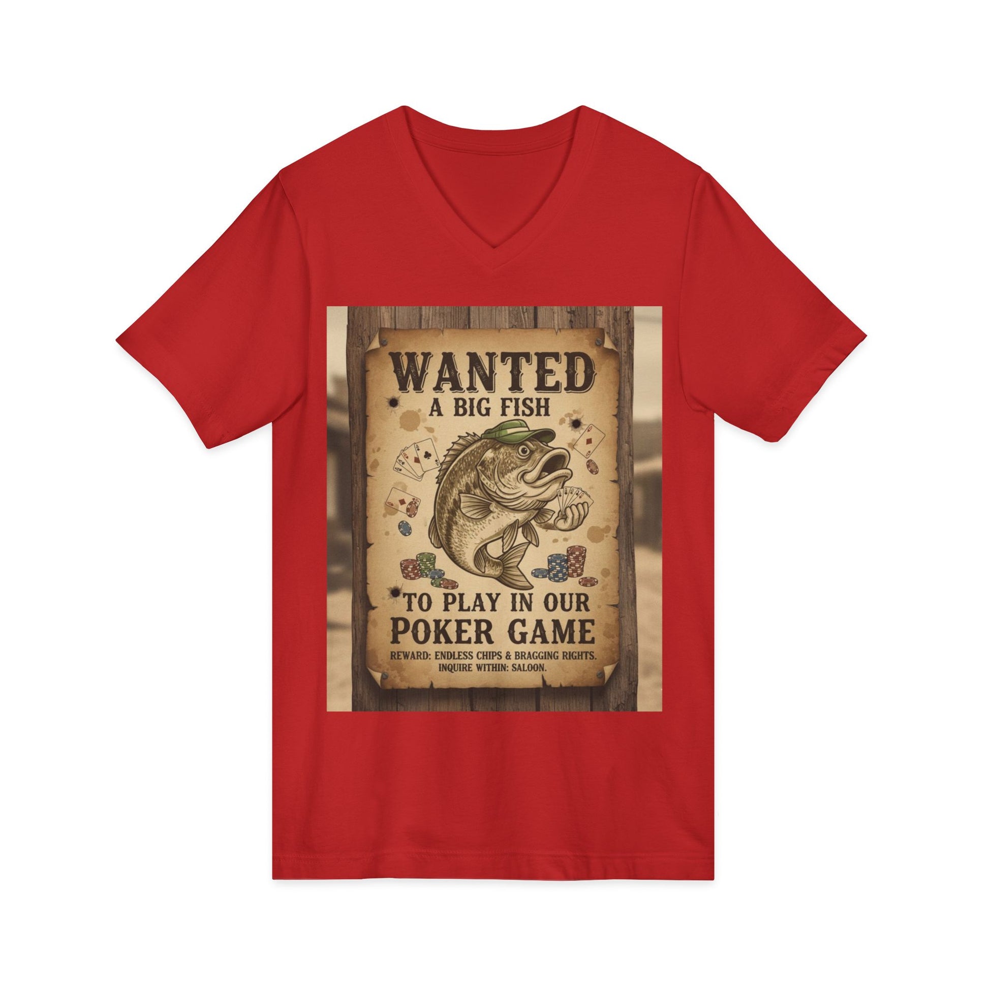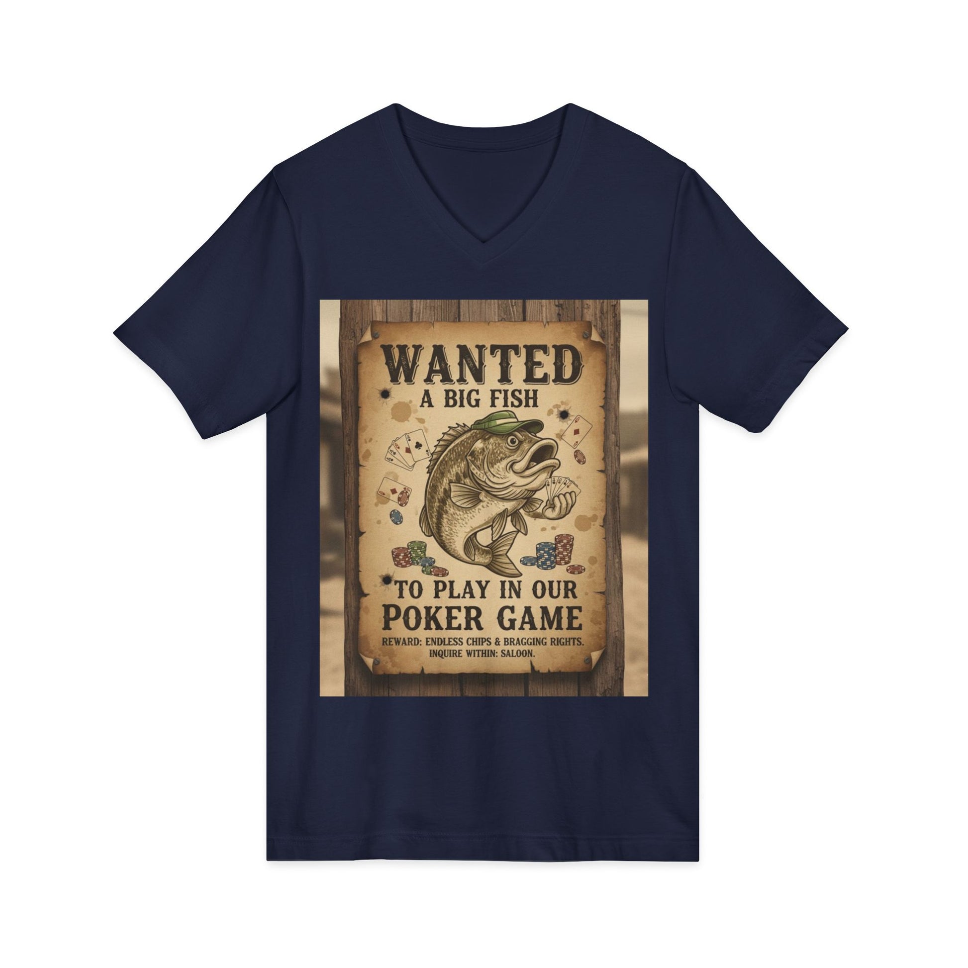 Wanted Poker Fish V-Neck Tee